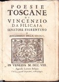 Volume in 16° (mm 160 x 95), pagine XVI + 367. Legatura tutta pelle coeva, titolo in oro sul dorso. Titolo sbiadito. Copia buona.