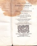 Vol. in 16°, frontespizio con marca tipografica in xilografia con la Fenice che risorge dalle fiamme con il motto "Post fata resurgo", pp. 32 n.n. con prefazione e indice, 516, due tavv. ripiegate in fine "Arbor Porphyrij" e "Arbor Purchotiana". Legatura artigianale recente in simil pelle marrone muta. Macchia di ossidazione o umidità dal frontespizio a pag. 170, alcune antiche note a china. Copia buona. Primo volume delle lezioni di filosofia del filosofo francese Edmond Purchot (1651-1734), in una interessante edizione padovana.
