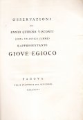 Volume in 4° (mm 310), pagine 52. Incisione su rame nell'antiporta di Giovanni Antonio Sasso con riprodotto il cammeo con il volto di Giove: "Juppiter Aegiocus Ephesi nuper effosus". Legatura cartonata coeva muta. Nome dell'autore a penna e numeri su etichette sul piatto anteriore, dorso un po' rovinato. Edizione molto rara. Condizioni buone, parzialmente intonso.